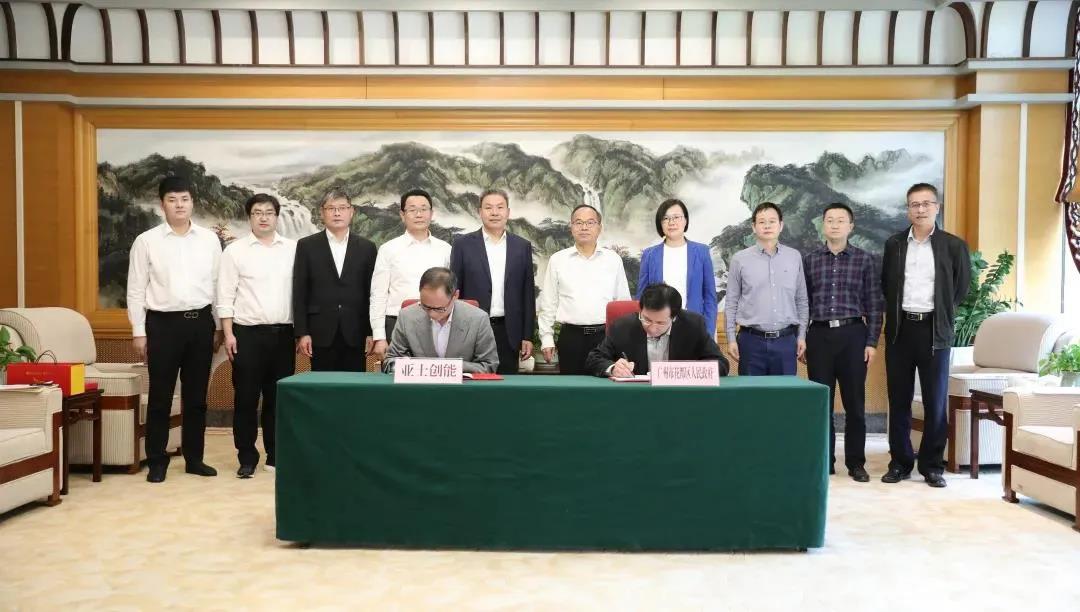 中共广州市花都区委常委、常务副区长罗干政,亚士创能董事、常务副总裁、董事会秘书王永军代表双方签字