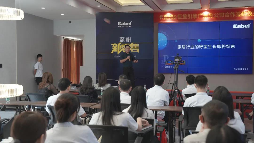 会上,卡百利总经理王辉、巨量引擎广东家居总负责人王涛作为双方企业代表正式签署《合作协议》。本次签约,不仅是卡百利品牌深耕新零售、助力企业数字化转型的又一举措。同时,也是卡百利年底销售冲刺,厂商齐头并进、冲刺全年目标的一次大动员。