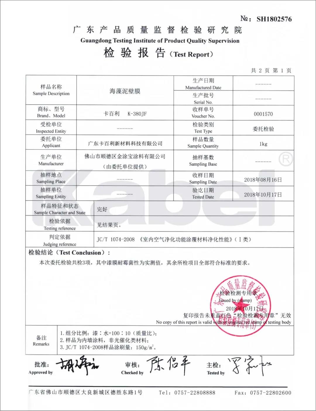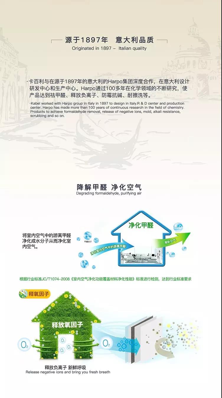 高效、持久、安全,这是卡百利降解甲醛技术突出的三大特点。经过国家权威机构检测,卡百利艺术涂料甲醛净化效率>85%,持久净化率>71%,远高于国家检测标准。