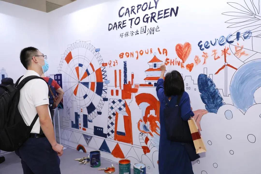 参观者参与到现场涂鸦当中,体验嘉宝莉环保涂料产品