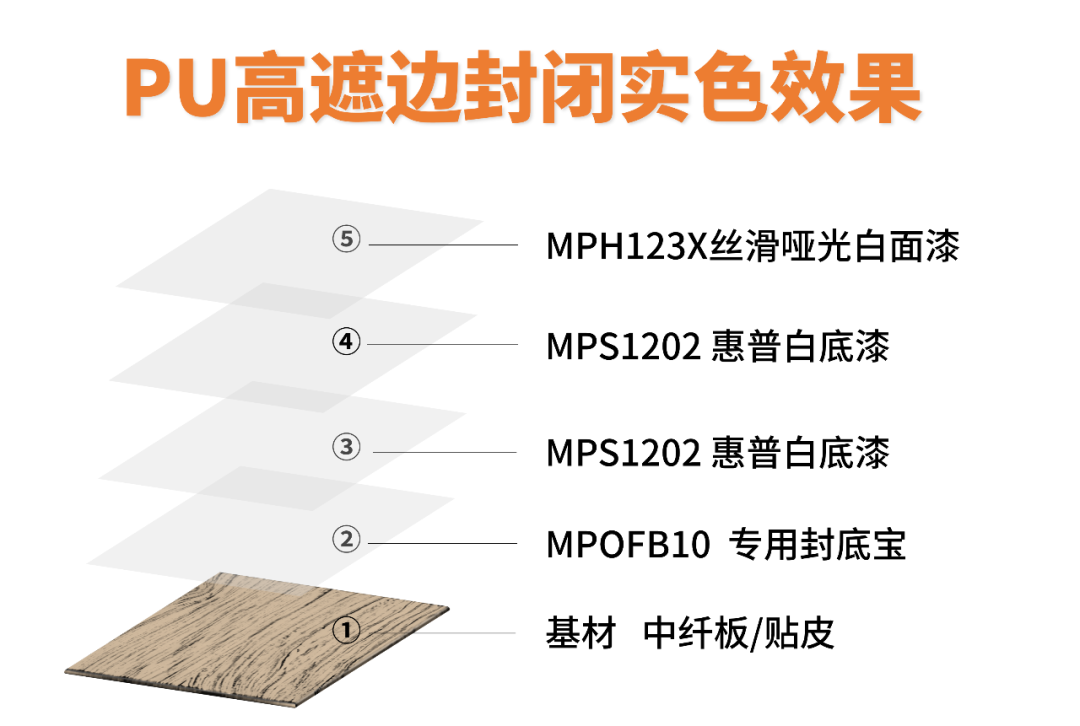 面漆选用MPH123X丝滑哑光白面漆,遮黑边强,流平性好,漆膜手感丝滑。
