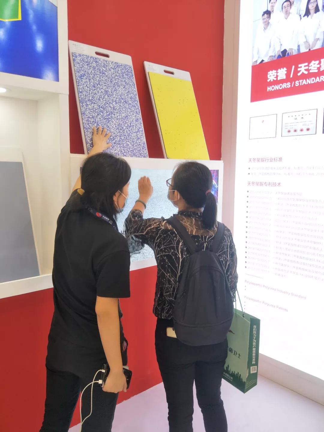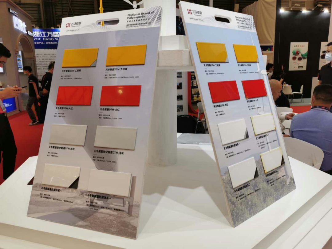 在展会上,飞扬展出了近年来开发的多款新型聚天门冬氨酸酯树脂,灵活的活化期可协助终端用户开发更多高性能的防护涂料;同时展出了天冬聚脲应用成果如民用防水、高效地坪、DTM钢结构防腐涂料。这些科技成果吸引了大量客商前来咨询、探讨,其中部分还提出了合作意向。