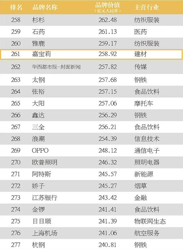 此次实力登榜,充分体现了嘉宝莉品牌的健康可持续发展。嘉宝莉自2004年首届上榜后,到目前已累计15次上榜,其中连续六年位居中国涂料行业第一。品牌价值从2004年的5.79亿元增长至2020年的258.92亿元,十六年时间里,嘉宝莉品牌价值增长了4371.85%。嘉宝莉的未来,更值得期待!