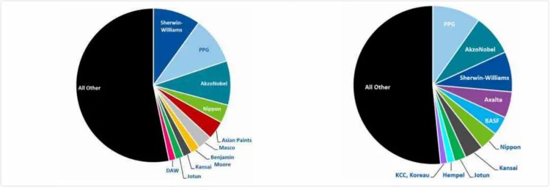 从左起分别为:建筑涂料市场企业格局与工业涂料市场企业格局