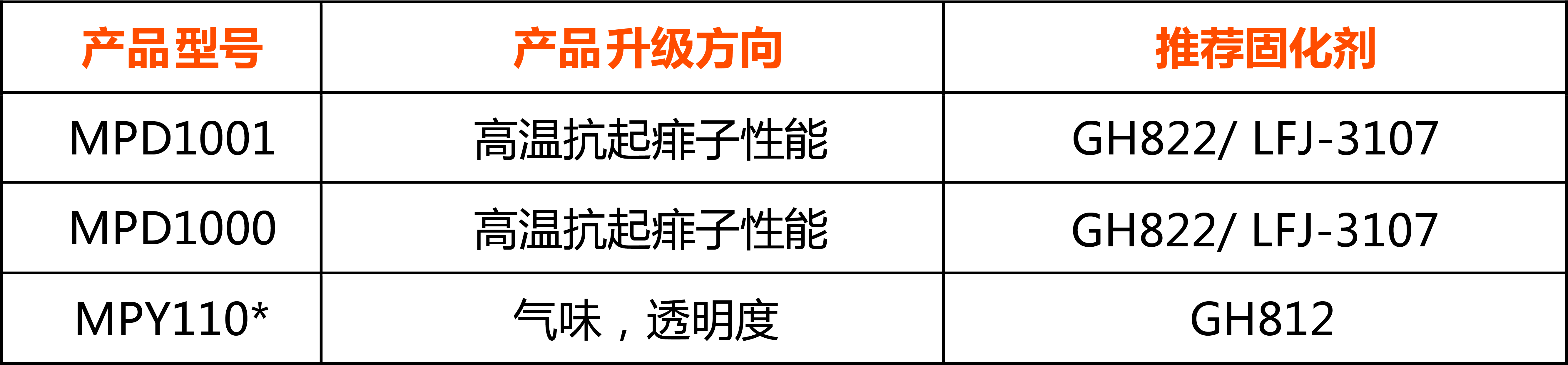 针对以上市场需求,嘉宝莉家具漆对大流通产品中的3款爆品:MPD1000、 MPD1001和 MPY110*,进行全新优化升级,对于透明底漆MPD1000、MPD1001,升级方向聚焦高温抗起痱子性能,对于透明面漆MPY110*,升级方向聚焦在气味和透明度上。