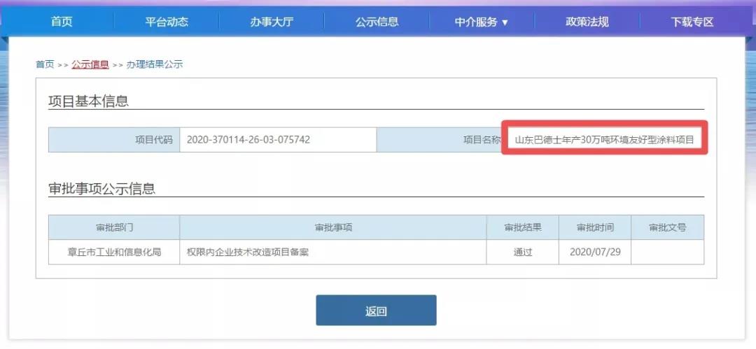 7月底,山东巴德士化工有限公司(简称山东巴德士)所在地、济南市章丘区的工业和信息化局公示了《山东巴德士年产30万吨环境友好型涂料项目》的技术改造项目备案的审批结果,显示该项目备案获得通过。这将意味着,山东巴德士具备了通过技术改造扩大产能的条件。