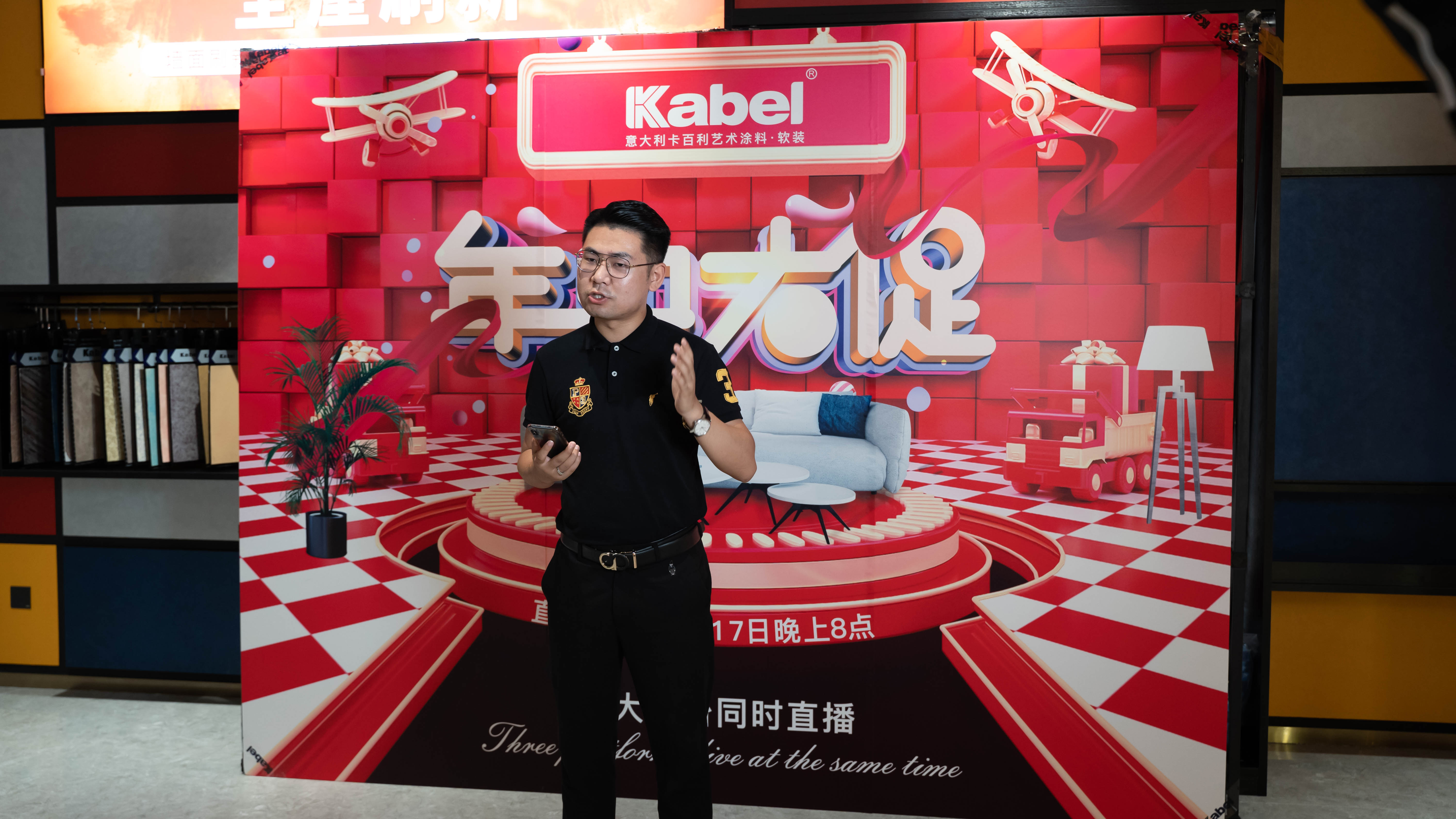 直播伊始,在主播龙老师的带领下,消费者在线观看卡百利总部展厅,领略新中式、意式轻奢风格展厅设计,直观感受了用卡百利艺术涂料+软装产品所打造的空间设计,以及其空间应用效果。以崭新方式呈现产品质感属性,把传统的促销活动,升级为以满足消费者需求为导向,搭建互动交流的线上营销零售模式。
