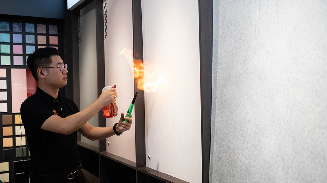 随后,主播龙老师用专业知识分别介绍卡百利艺术涂料成分、性能,用喷水、擦洗、防火、祛甲醛测试等实验,让大家直观了解卡百利艺术涂料与其他墙面装饰材料的区别。同时还介绍艺术涂料装饰性强,性能环保,在本次年中大促活动中也是非常优惠。