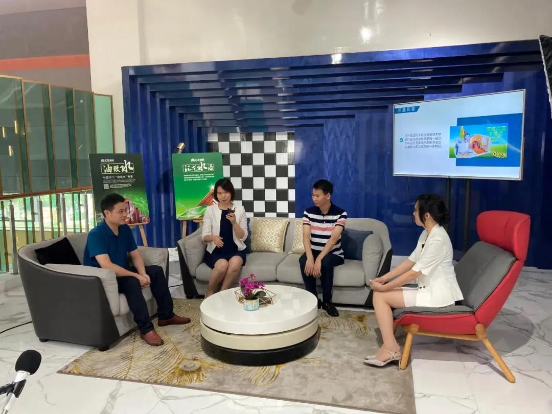 今年6月8日,润成创展主办一场环保涂装及设备新突破专题直播活动,汇龙涂料营销事业部副总经理尹志明(右二)在直播中揭开“高效水性涂装解决方案”的奥秘