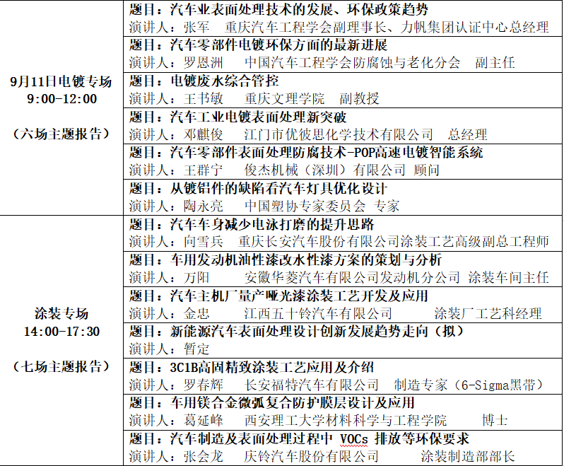 如何从结构、材料、工艺等方面,应用新设计、新材料、新技术来实现对汽车整体的减重,以完成汽车向“低能耗”、“低排放”的转变问题。为提高整车及零部件的表面处理水平,应对未来汽车行业面临的挑战,推动西南地区汽车及零部件企业对表面处理新技术的应用。重庆智建展览有限公司、广东智展展览有限公司联合重庆汽车工程学会、中国表面工程协会涂装分会、中国表面工程协会电镀分会、重庆表面工程协会、重庆表面工程技术协会、重庆市涂料涂装行业协会、重庆市电镀行业协会等机构将于2020年9月11日在重庆国际博览中心共同举办本次研讨会,会议将围绕汽车其量化材料涂装技术最新发展趋势及零部件表面处理、防腐蚀与防老化技术、VOCs的减排而展开,希望广大行业人士踊跃参加。