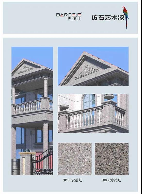 巴德士仿石艺术漆,融合多项前沿科技,99%的石材仿真度能替代传统的石材,安全系数高且化学耐候性与物理性能优异,搭配设计出图、工艺制定、技术交流、现场施工、监理验收等系统化涂装服务,是旧墙翻新、高端别墅涂装的首选。