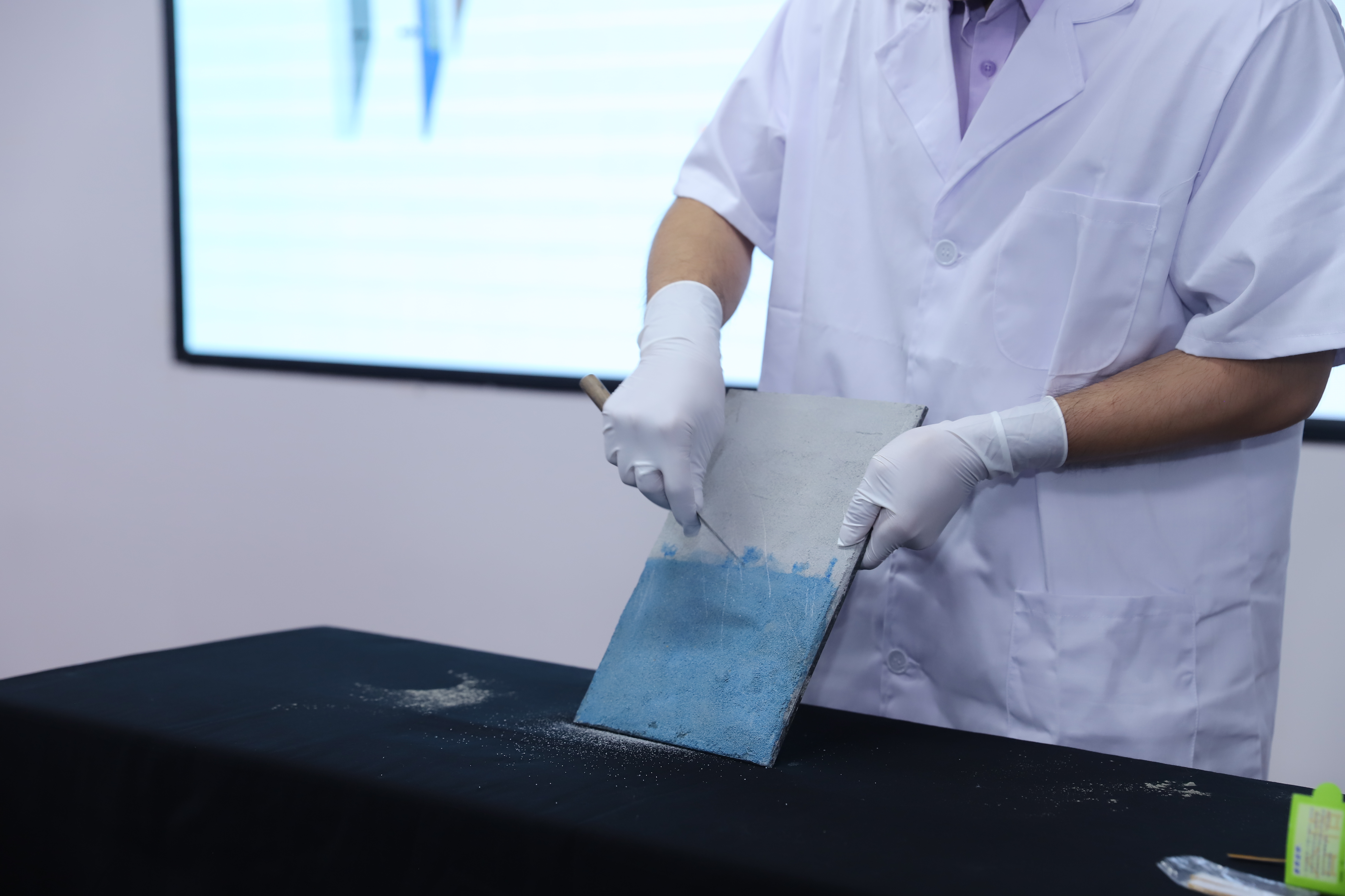 在厨卫防水系统方面,他对厨卫防水涂料的常见施工流程及问题进行分析,在现场并邀请了相关专业人员对厨卫地面、立面进行了演示;在墙面防水系统方面,他对墙固、地固进行了充分解释,并向大家介绍了巴德富室内防水JS防水涂料、防水口料、砂口、聋口背胶、固砂宝等产品,助力消费升级下方水行业向功能化、环保化方向发展。