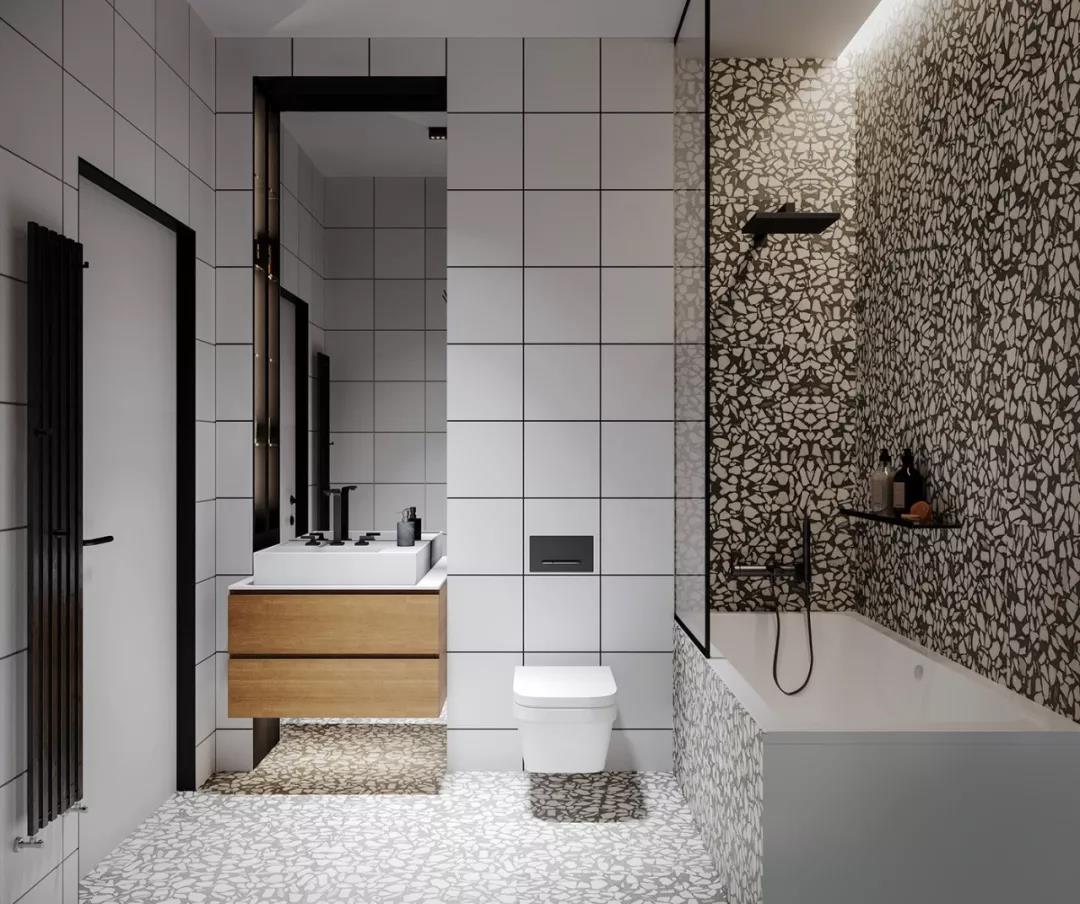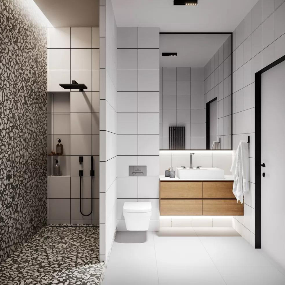 白砖一身素衣,没有一丝纹路,简洁到极致,搭配木质浴室柜碰撞出强烈CP感的。