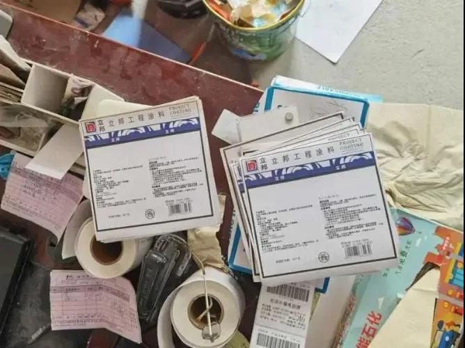 随着检查的深入,在当事人一个虚掩仓库内又陆续查获印有“多乐士”“立邦”等知名品牌商标的涂料空桶近2000个,并在其负责人办公室发现已经丢入垃圾桶的进销货账簿数十本。固定相关证据后,执法人员依法要求当事人提供上述产品的委托加工合同、授权材料、出厂检验报告以及营业执照等,其均无法提供。