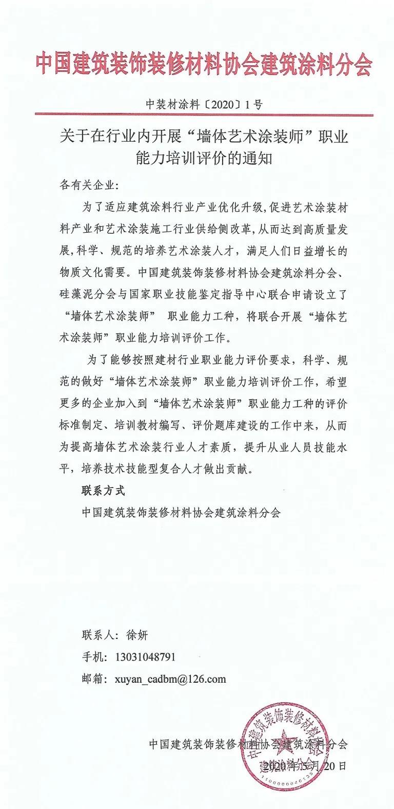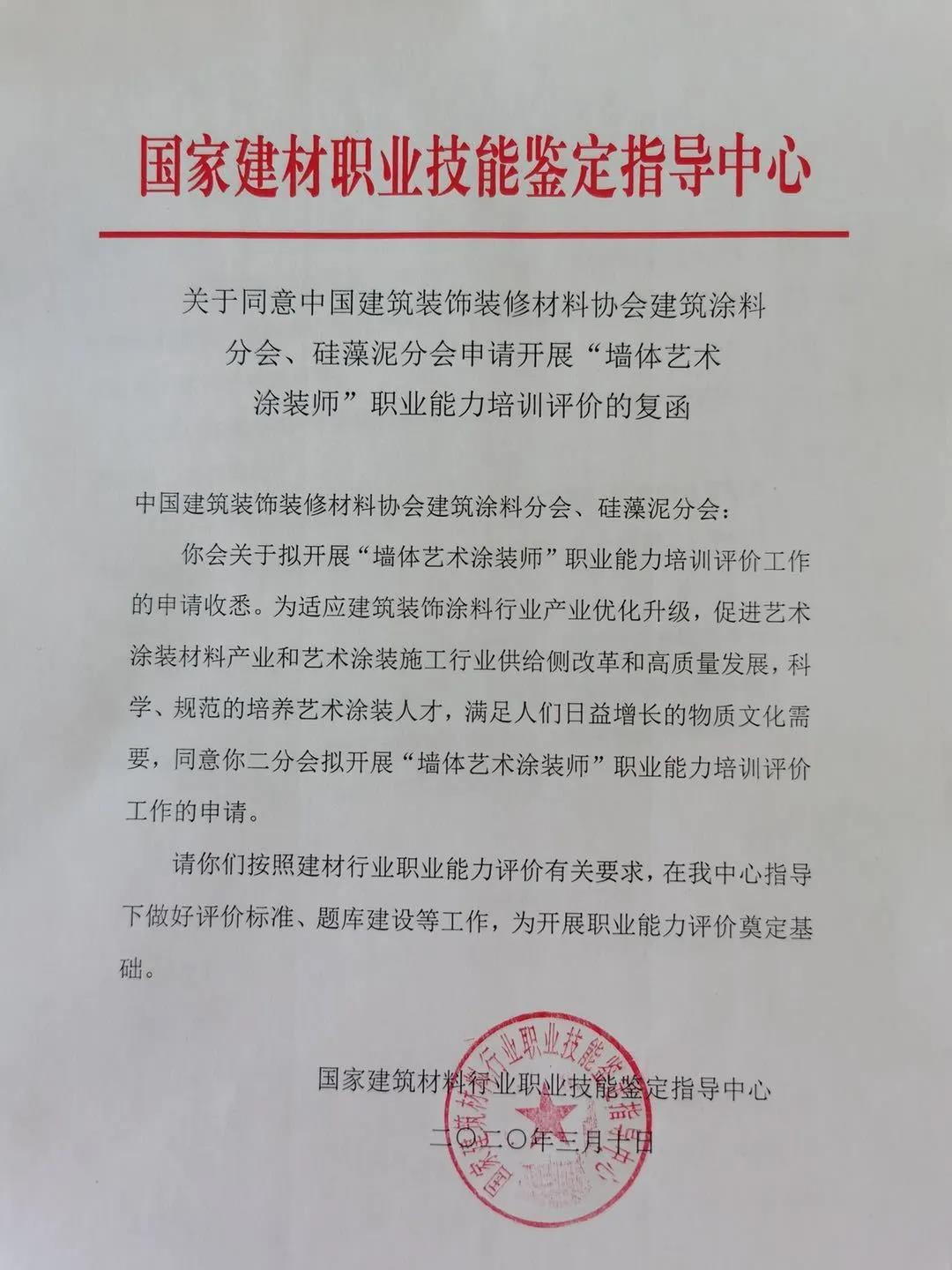 为了适应建筑涂料行业产业优化升级,促进艺术涂料装材料产业和艺术涂料施工行业供给侧改革,从而达到高质量发展,科学、规范的培养艺术涂装人才,满足人们日益增长的物质文化需要。中国建筑装饰装修材料协会建筑涂料分会、硅藻泥分会与国家职业技能鉴定指导中心联合申请设立了“墙体艺术涂装师”职业能力培训评价工作。希望更多的企业加入到“墙体艺术涂装师”职业能力工种的评价标准制定、培训教材编写、评价题库建设的工作中来,从而为提高墙体艺术涂装行业人才素质,提升从业人员技能水平,培养技术技能型符合人才做出贡献。