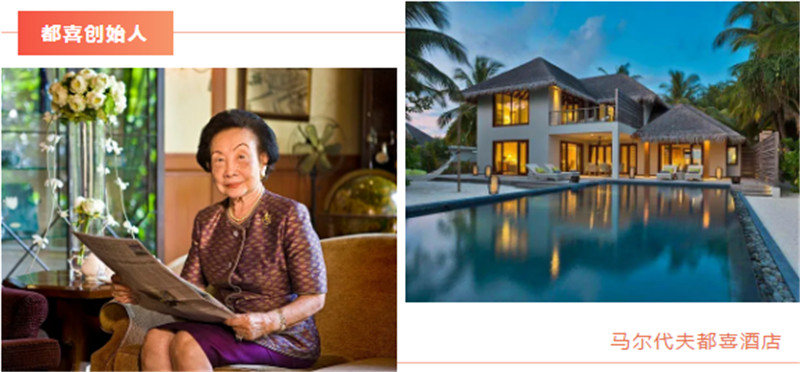 都喜国际集团由荣誉会长Thanpuying Chanut Piyaoui 女士1948年建立,其第一家酒店是位于曼谷的公主酒店。如今,都喜国际已发展成为酒店管理及酒店教育领域的领导者。创始人曾荣获香港理工大学SHTM终身成就奖,和泰国国王授予的“皇家最高奖”、“最杰出泰国骑士大指挥官”勋章,都喜国际也因此具备了泰国皇室背景。都喜国际目前在全球10多个国家运营着33家酒店,中国就有9家之多,筹划中的50多个项目也即将在巴林、孟加拉国、不丹、阿曼等地陆续展开。