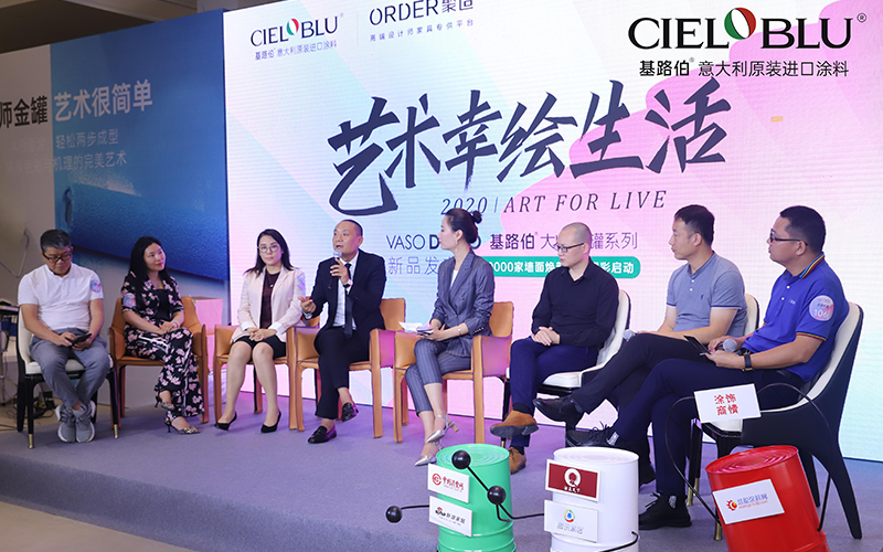 在由广涂协吕水列秘书长担纲主持的对话基路伯环节,CIELOBLU基路伯亚太区运营中心CEO冯星俊、凤凰卫视项目事业部总监庄安妮、深圳居众装饰公司市场总监严雪、凹得聚造合伙人袁晓波、佛山红星美凯龙招商总监王磊、品正设计装饰总经理谢伟文围绕艺术涂料市场优势、消费者需求、室内设计的流行趋势以及家居上下游协同合作等话题进行了精彩的分享探讨,大大启发了大家关于艺术涂料、设计与生活的思考。