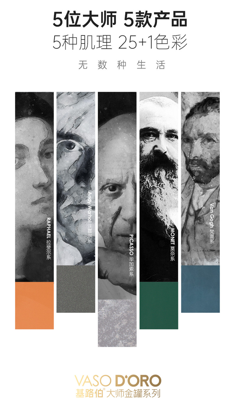 如何将大师经典美学与艺术涂料产品融合?如何将研发技术与生活艺术匹配?在CIELOBLU基路伯大师金罐系列新品发布环节,基路伯产品应用部经理黄炳坤深入浅出的进行了阐述。黄经理谈到:CIELOBLU基路伯大师金罐系列的研发,跨越了很长时间。这个时间,不仅是研发人员耗费的时间,更是跨越了数百年的文化溯源和设计灵感。CIELOBLU基路伯研发团队针对数百位艺术大师的甄选,通过对大师艺术风貌的研究、捕捉与复刻,最终确定以拉斐尔、莫奈、梵高、毕加索、沃霍尔,这五位来自不同时代、不同国度、不同艺术流派的大师成为大师金罐系列的灵魂与源头,并以墙面艺术涂料为载体,开启全新艺术风华。而CIELOBLU基路伯大师金罐系列产品所执行的欧洲三大严苛环保标准、25+1专利预调色以及颠覆传统的A/B面涂施工技术,改变的不仅仅是产品的品质与质感,更是技术的革新和思维的嬗变。