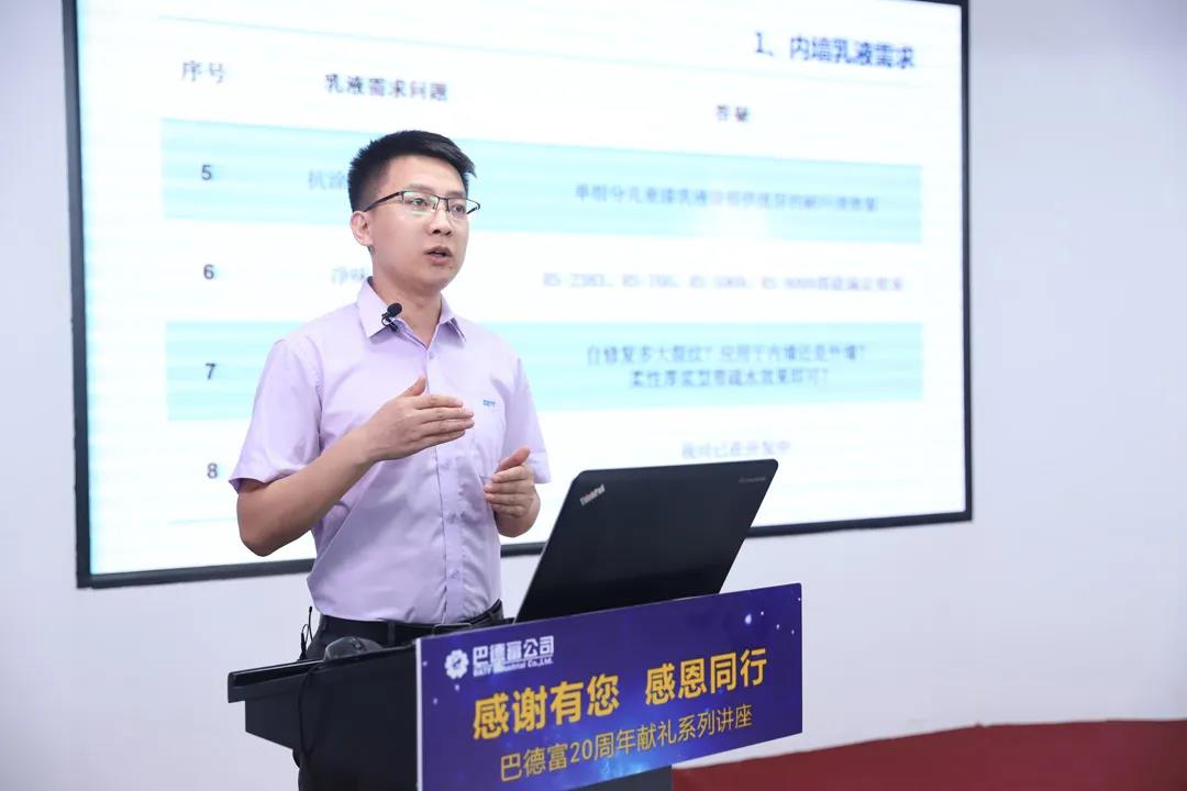 巴德富集团渠道部总工何顺贤以《真石涂料的品质升级》为主题开讲