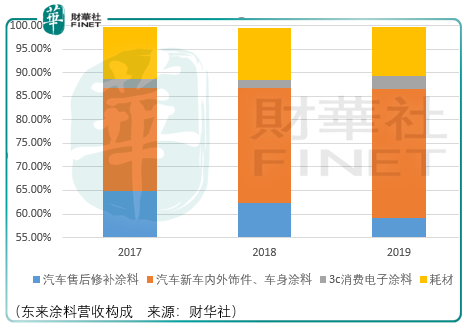 东来涂料是一家以汽车涂料供应为主的涂料供应商,产品分为三个品类:汽车售后修补涂料、新车内外饰件及车身涂料、3c消费电子涂料,其中汽车售后修补涂料为目前主要收入来源。