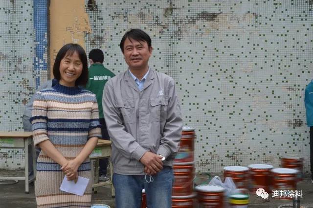 海尾小学陈校长与一品迪邦行政部潘部长合影