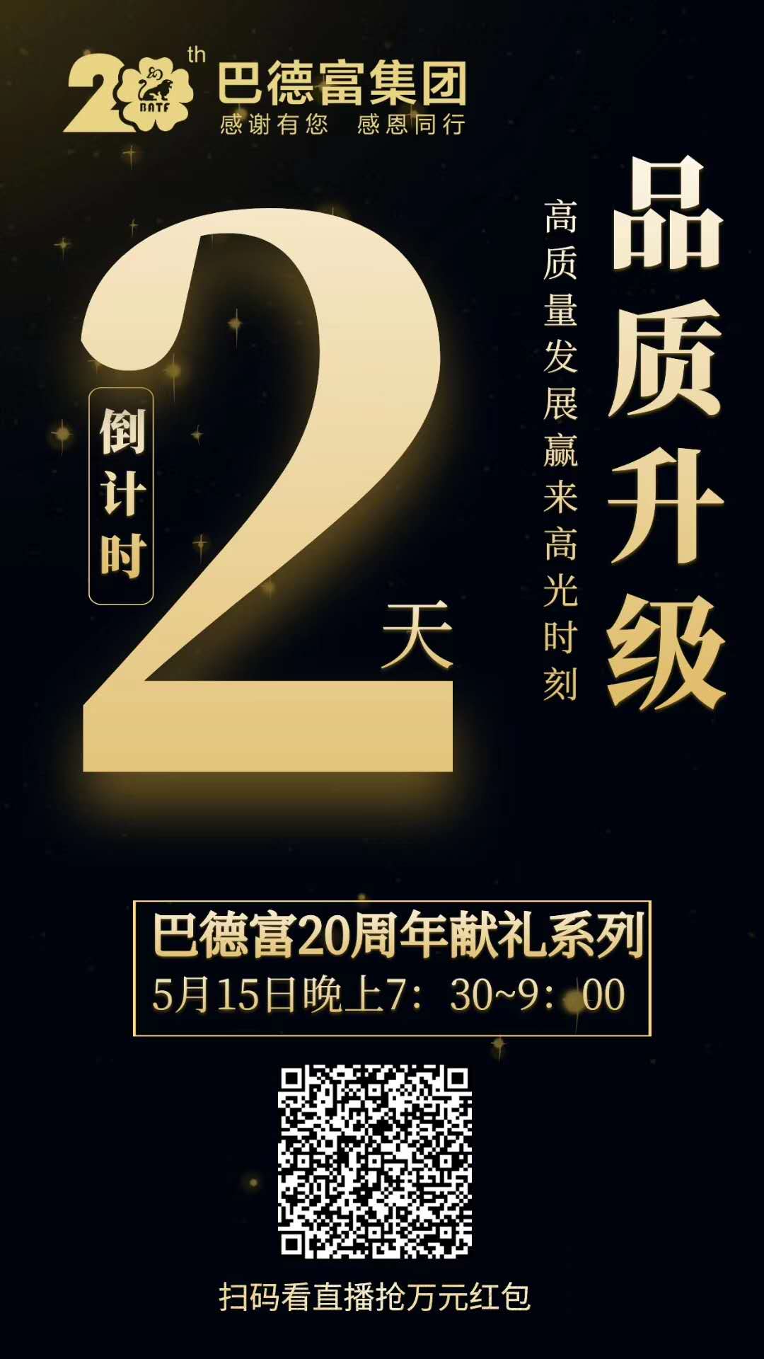 “消费升级之品质生活的探究”——巴德富20周年献礼系列讲座第三场将于5月15日19:30分开播。此次直播特邀请了“涂料老爷子”施青林和巴德富集团渠道部总工何顺贤,围绕“品质升级,高质量发展赢来'高光时刻'”的主题展开探讨。