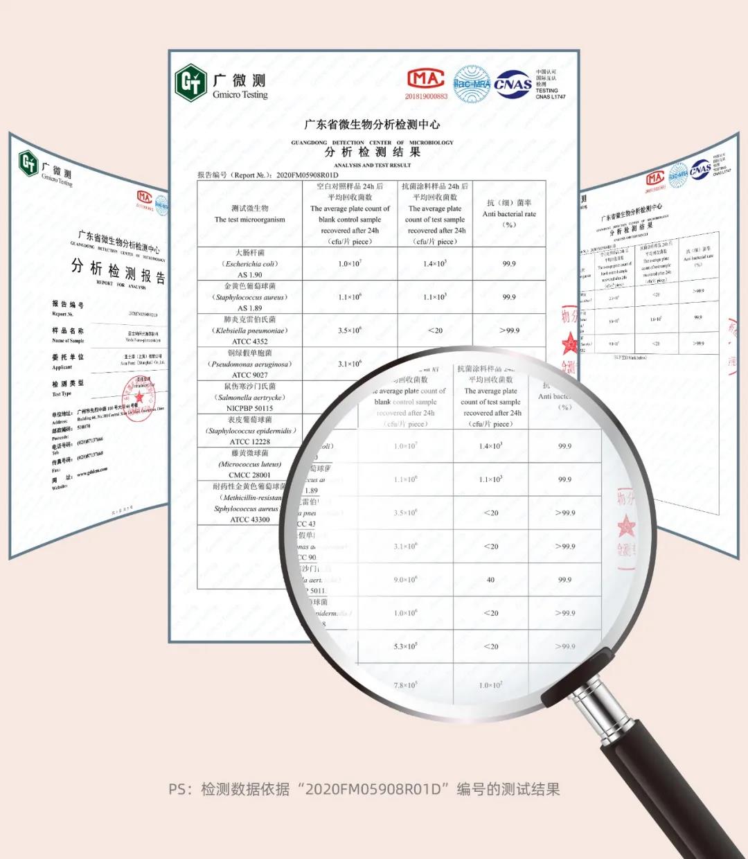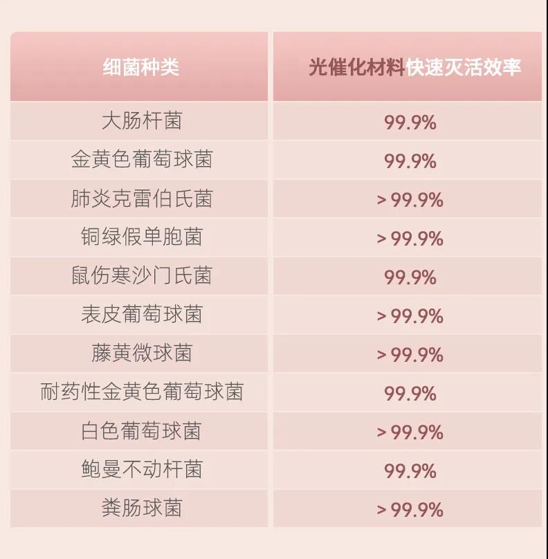 2、细菌灭活率99%以上,比传统抗菌涂层更高效