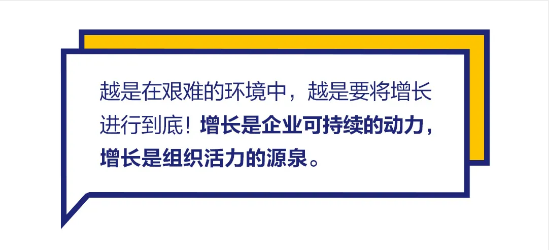 A : 越是在艰难的时候,越是要统一思想坚定信心,坚信发展就是硬道理。越是在艰难的环境中,越是要将增长进行到底!增长是企业可持续发展的动力,增长是组织活力的源泉。只有增长,员工才能成长,才能看到希望!