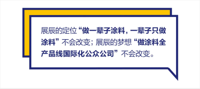 展辰的梦想“做涂料全产品线国际化公众公司”不会改变;