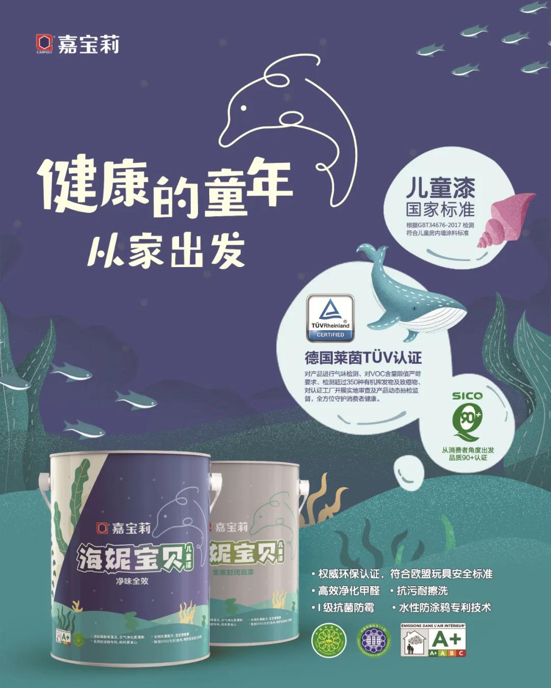 海妮宝贝儿童漆是嘉宝莉2019年下半年上市的一款升级产品,此次环保认证再升级,继“品质90+”之后,再获德国莱茵TÜV认证,用“双认证”打造安全、绿色环保的儿童房居住环境,保障孩子健康成长。