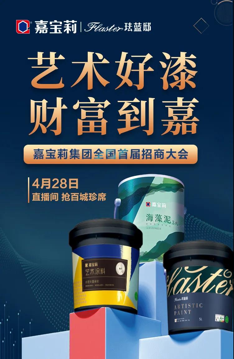 也欢迎您4月28日晚8点,准时走进嘉宝莉集团首届全国招商大会的直播间,抢位百城珍席。