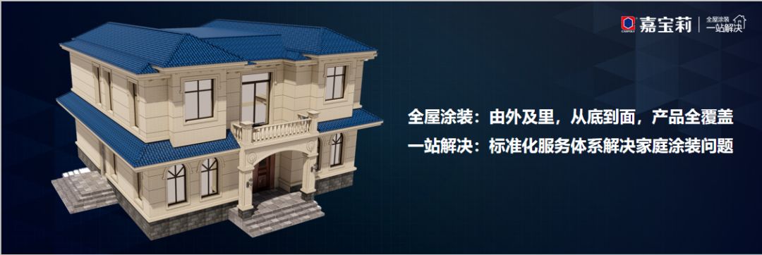 针对消费者在家装上的难题、痛点,施以森郑重发布了嘉宝莉全装修产品事业部2020年全新战略“全屋涂装,一站解决”。由外及里,从底到面,产品全覆盖,并采用标准化服务,为消费者解决家庭涂装问题。