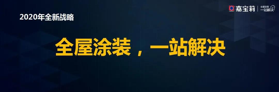 3月21日,市场部总监施以森在“与时俱竞,焕新出色”2020年嘉宝莉发布会上隆重推出“全屋涂装,一站解决”的新战略,主要包括两个核心内容——完善的一站式涂装服务和产品体系。