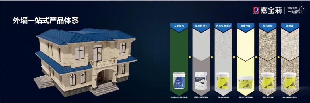 嘉宝莉一站式涂装产品体系产品线齐全,室内,室外涂装,从底到面,全面覆盖装修全过程,省工省时。嘉宝莉一站式产品体系秉持高环保标准,全线产品通过法国A+标准,产品更环保放心;从底到面,实现全程涂装无醛,让消费者无忧放心。