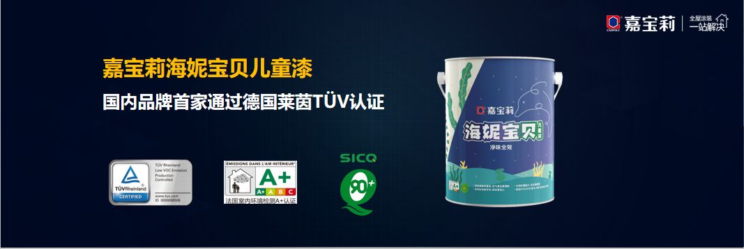 嘉宝莉海妮宝贝儿童漆率先通过欧洲双重认证,SICQ品质90+标准认证,并成为中国首家获得德国莱茵TüV认证的涂料品牌,再次彰显了国产涂料的国际品质和创新竞争力。