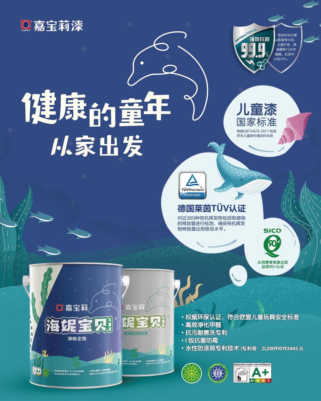 早在2004年,嘉宝莉就特立独行最早提出儿童漆概念,从“BB氧吧”儿童漆,到“快乐宝贝”、“聪明宝贝”、“海妮宝贝”等儿童漆产品,一次次技术革新和升级换代,引领儿童漆这一细分渠道产品不断发展和成熟。嘉宝莉还起草推动了儿童漆国家标准的出台。