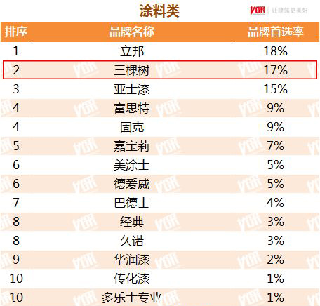 首选涂料类品牌第二名