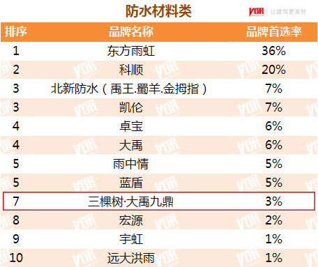 防水材料类第七名