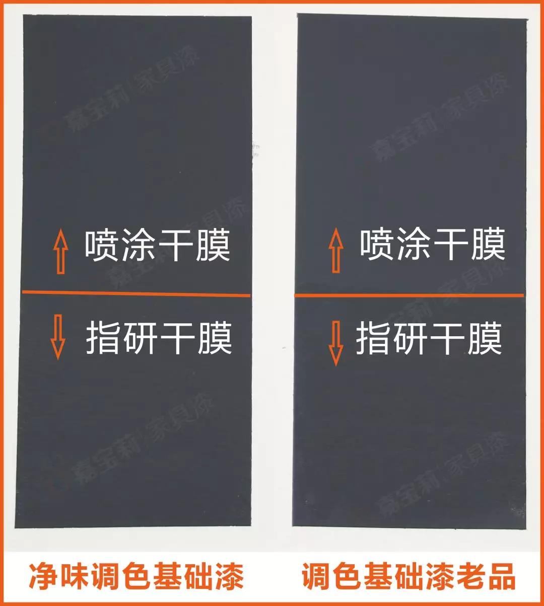传统的调色基础漆,湿膜与干膜色彩差异大,对色困难,而净味调色基础漆,湿膜与干膜色差小,对色容易,调色效率更高。