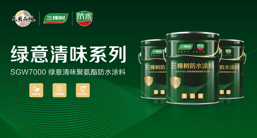 三棵树SGW7000绿意清味聚氨酯防水涂料是以异氰酸酯、聚醚多元醇为主要原料配以多种功能性助剂和填料经特殊工艺合成的新型、环保、健康的单组分聚氨酯防水涂料。该产品拥有水性材料的环保特性,同时兼具优异的物理化学性能。
