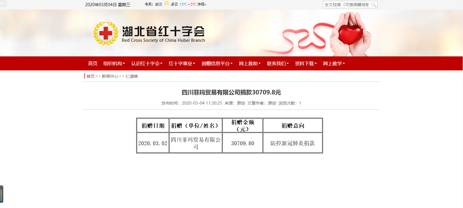 此次直播德国菲玛为湖北红十字会募得抗疫捐款30709.80元