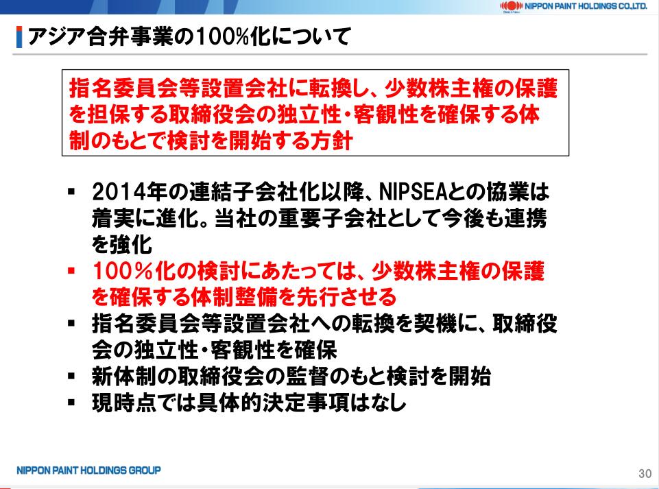 日涂控股关于亚洲合资事业(即立邦涂料事业)100%持股的阐述