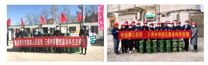 另外,三棵树还分别向宁夏银川市第四人民医院、福建龙岩康山医院、安徽省宿州市第三人民医院,捐赠了健康涂料,驰援医院建设项目。