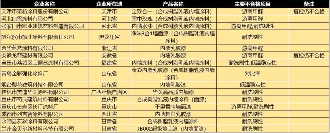 建筑用外墙涂料不合格产品名单