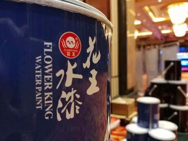 第二届中国高端定制家居联盟厦门高峰论坛上,绿底白字的花王水漆品牌形象在会场随处可见