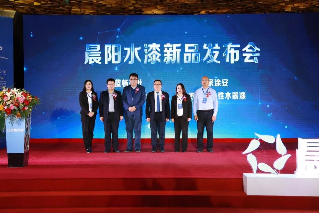 接下来,新品发布会迎来了激动人心的启动仪式环节,李彦兵、马林、董立志、杨远、隰建茹、卜敬娟等晨阳水漆领导共同进行了新品发布启动仪式,这标志着晨阳蓝畅荷叶金装超易洁7合1、家涂安双组份木器漆正式推向市场。