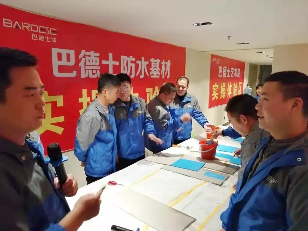 培训无弱角,学习助提高!巴德士集团产品应用部工程师黄康以及巴德士集团艺术漆施工项目部主任章金华分别为数十名核心经销商作“防水基材新品理论+实操培训”、“艺术漆新品理论+实操培训”。安排满满的巴德士“理论+实操”课程,赋予现场参会人员更有实力的“武器”以及更强大的信心,决胜南昌市场。
