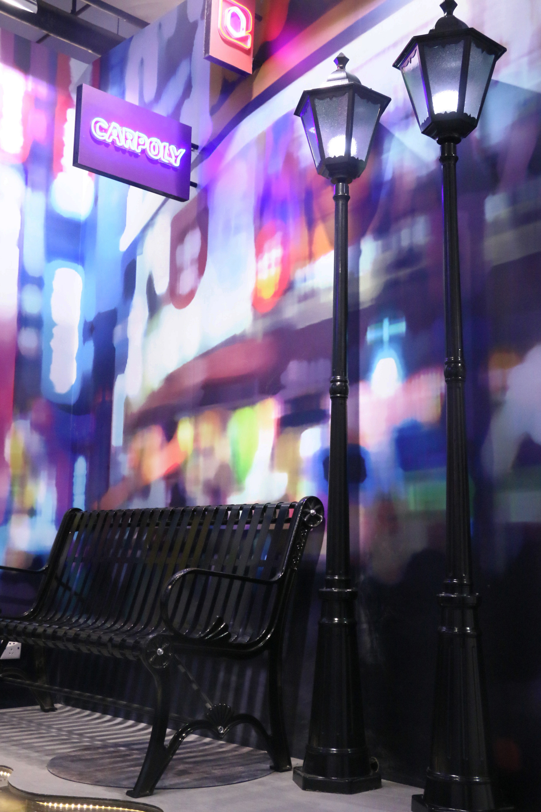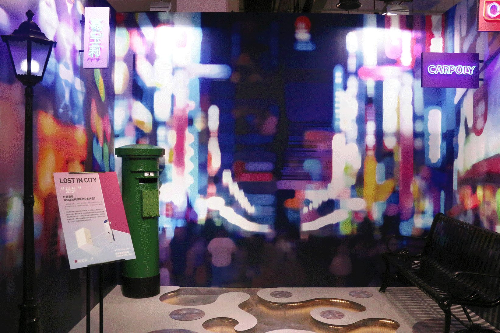 “迷失”主题下共打造了3个装置艺术,分别以“线条”、“街景”和“家”为灵感切入,利用不同的涂料色彩组合、灯光等呈现出风格迥异的空间艺术。
