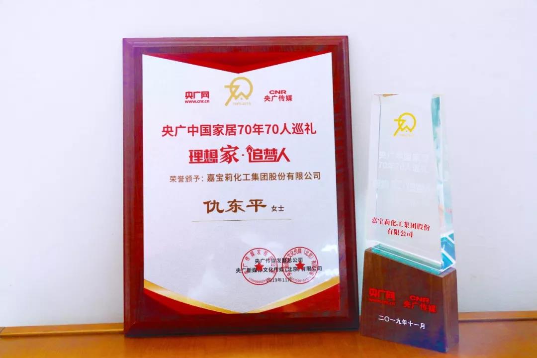 11月19日,由中央人民广播电台、央广传媒、央广网共同组织了发起的“理想家·追梦人”中国家居70年70人巡礼颁奖典礼在广州隆重举行。嘉宝莉荣幸入选中国家居70年70人巡礼首批企业,嘉宝莉董事、品牌总监仇东平入选央广中国家居70年70人巡礼首批企业家。