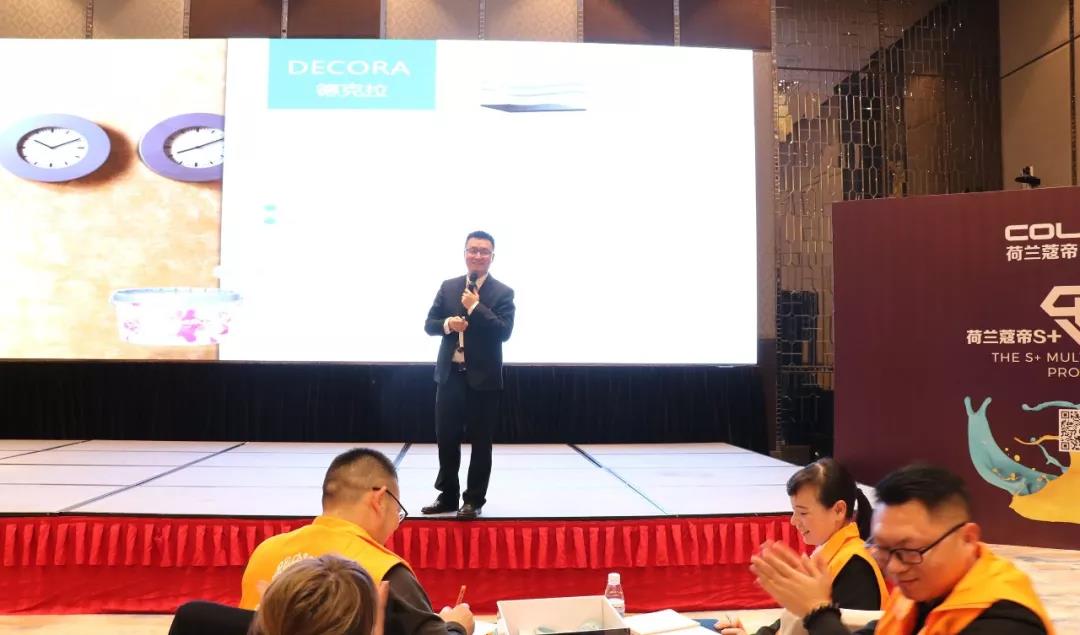 荷兰蔻帝中国区设计总监余总为大家介绍了蔻帝专卖店设计的文化理念,帮助线下专卖店以独具特色的形象吸引消费者进店,并以专业知识为经销商培训关于产品的色彩搭配,结合实际案例解析,给予最佳的搭配方案,使他们可以根据不同客户需求、装修风格,为消费者进行专业的墙面产品推荐及色彩搭配。